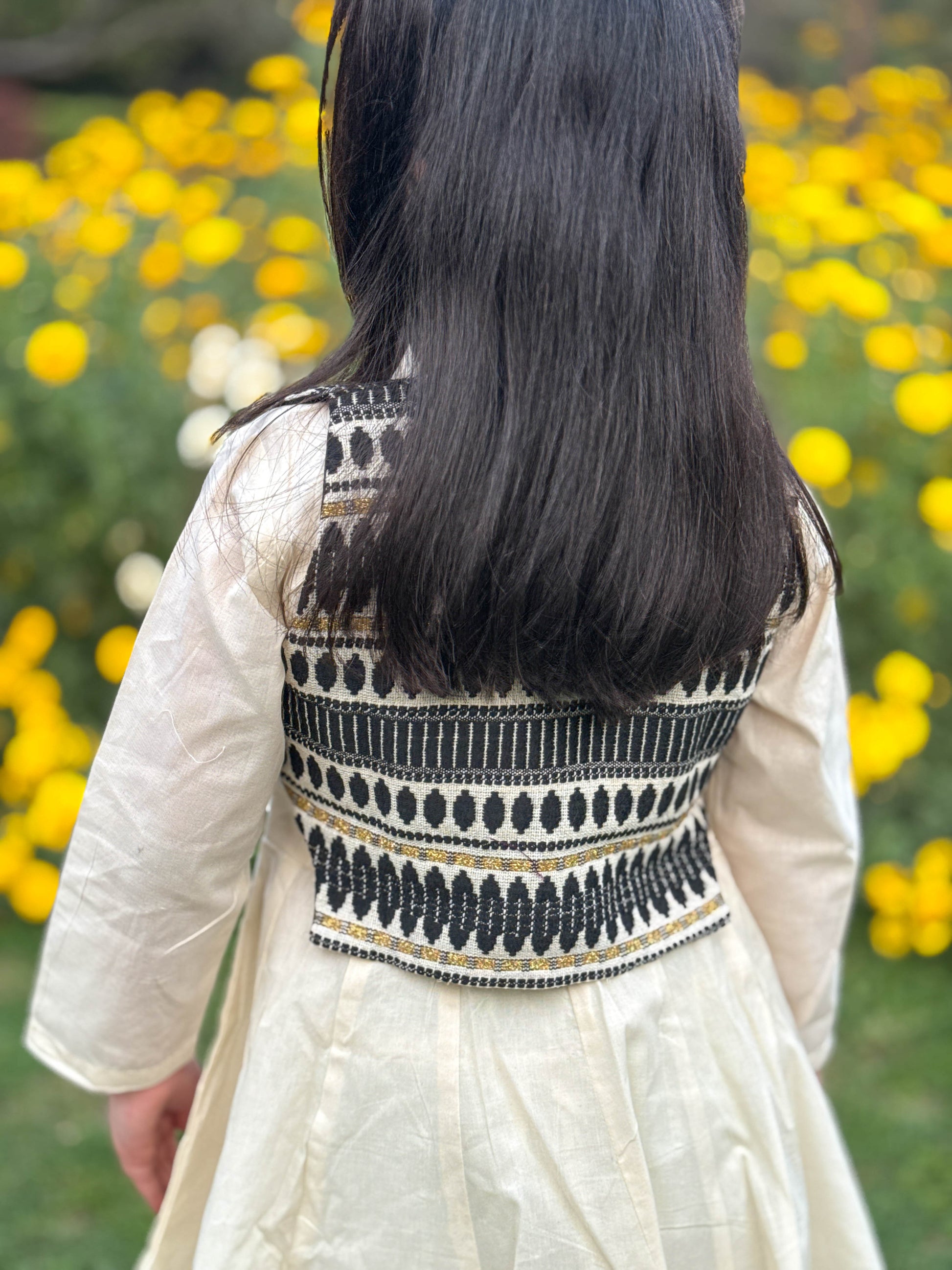 Black Afghan Jacket Frock with Dhoti Set for Girls