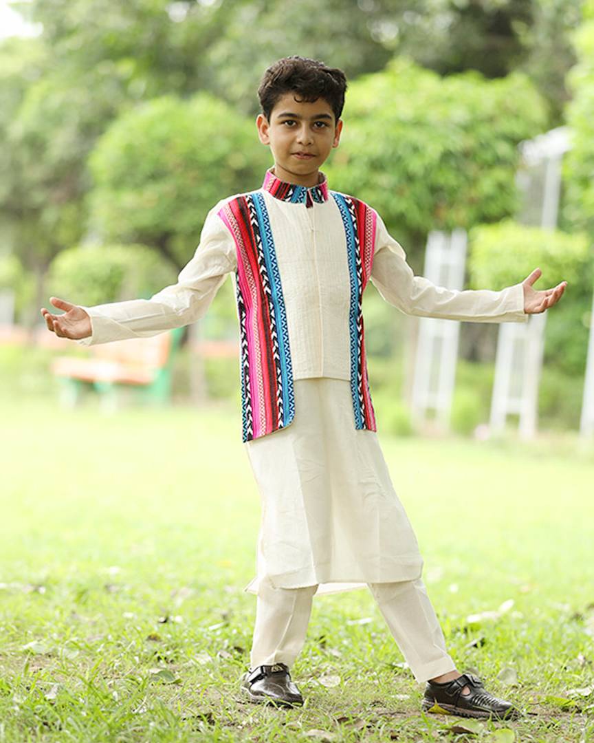 Afghan Gulabi Boys Kurta with Jacket and Pajama Set