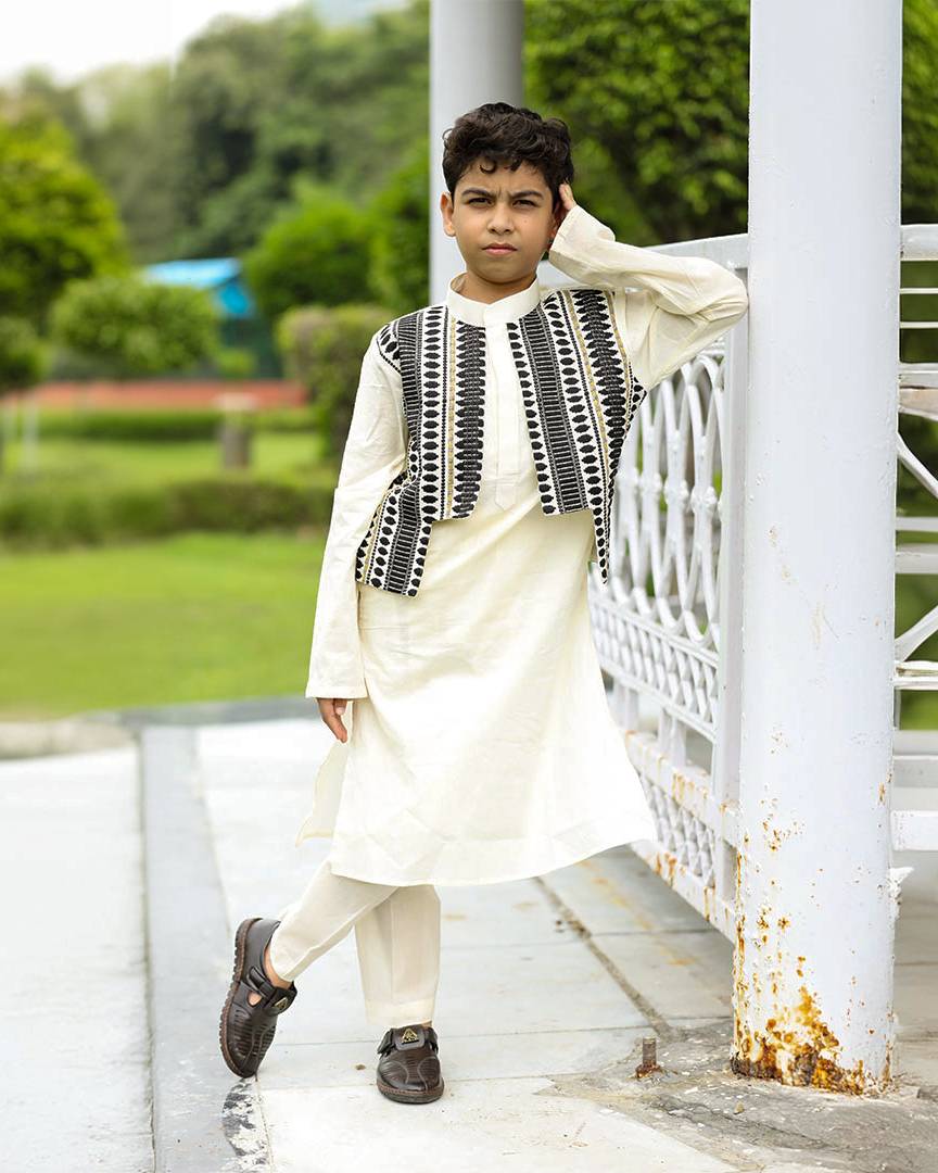 Siyah Afghani Boys Kurta with Jacket and Pajama Set