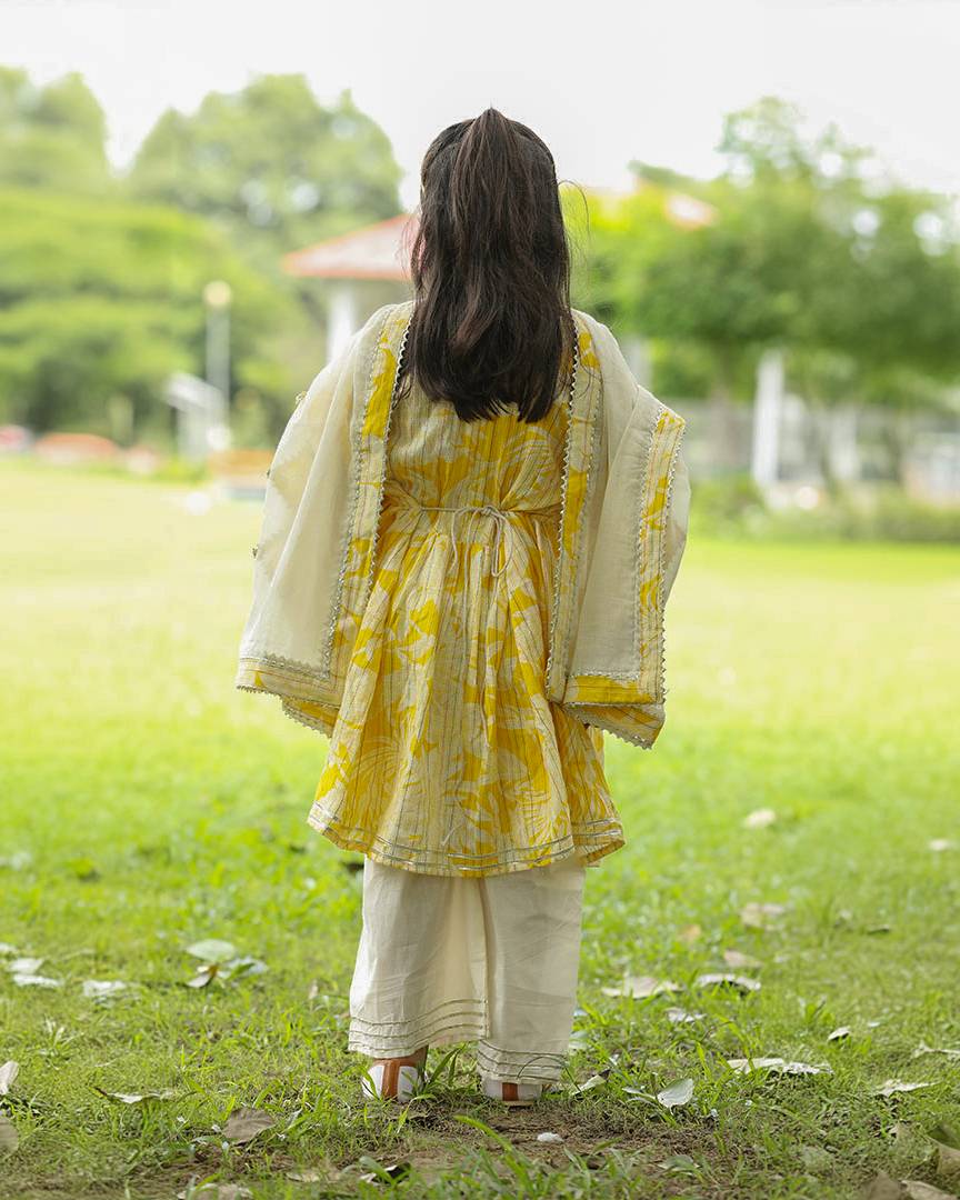 Laddoo Peela Alia Cut Sharara Set with Heavy Dupatta (Girls)