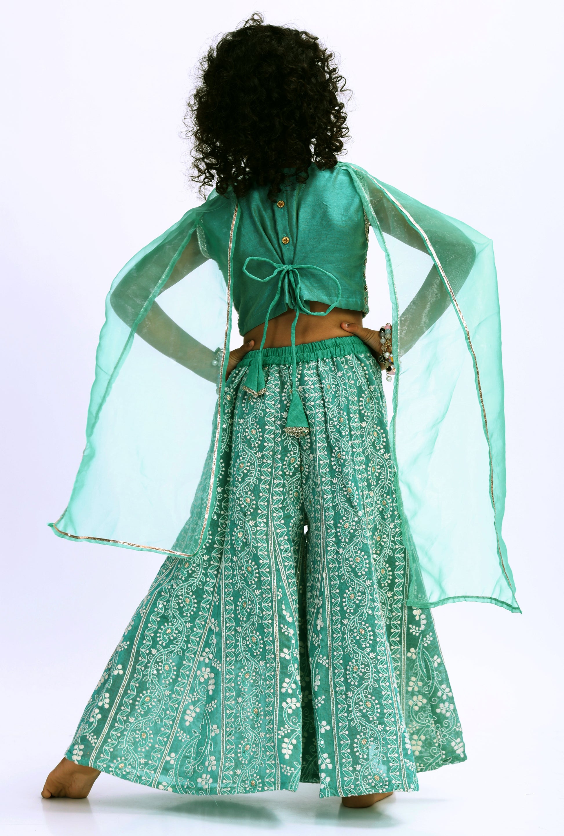 Lucknowi Chikan Rama Green Sharara
