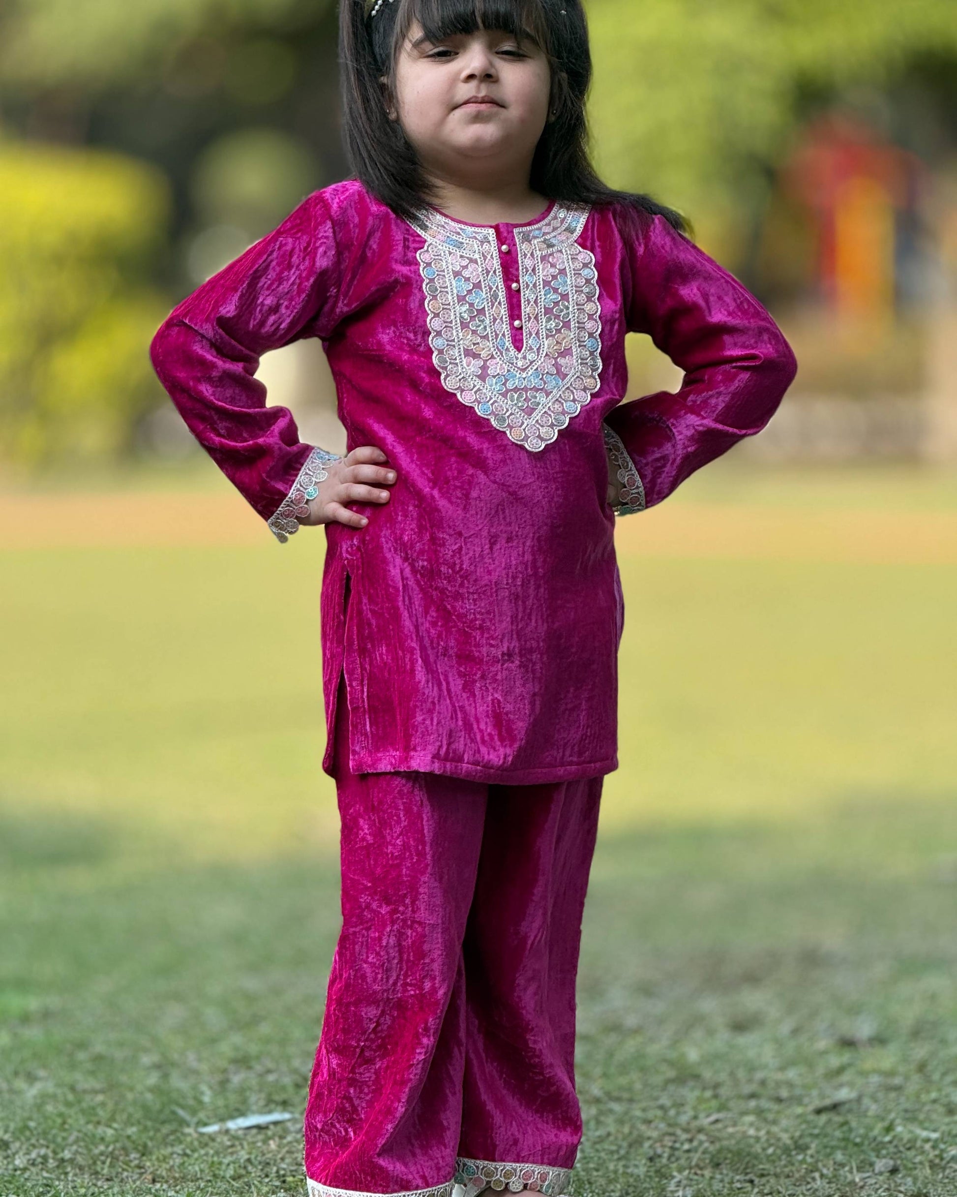 Velvet Embroidery Kurta & Salwar (Magenta)